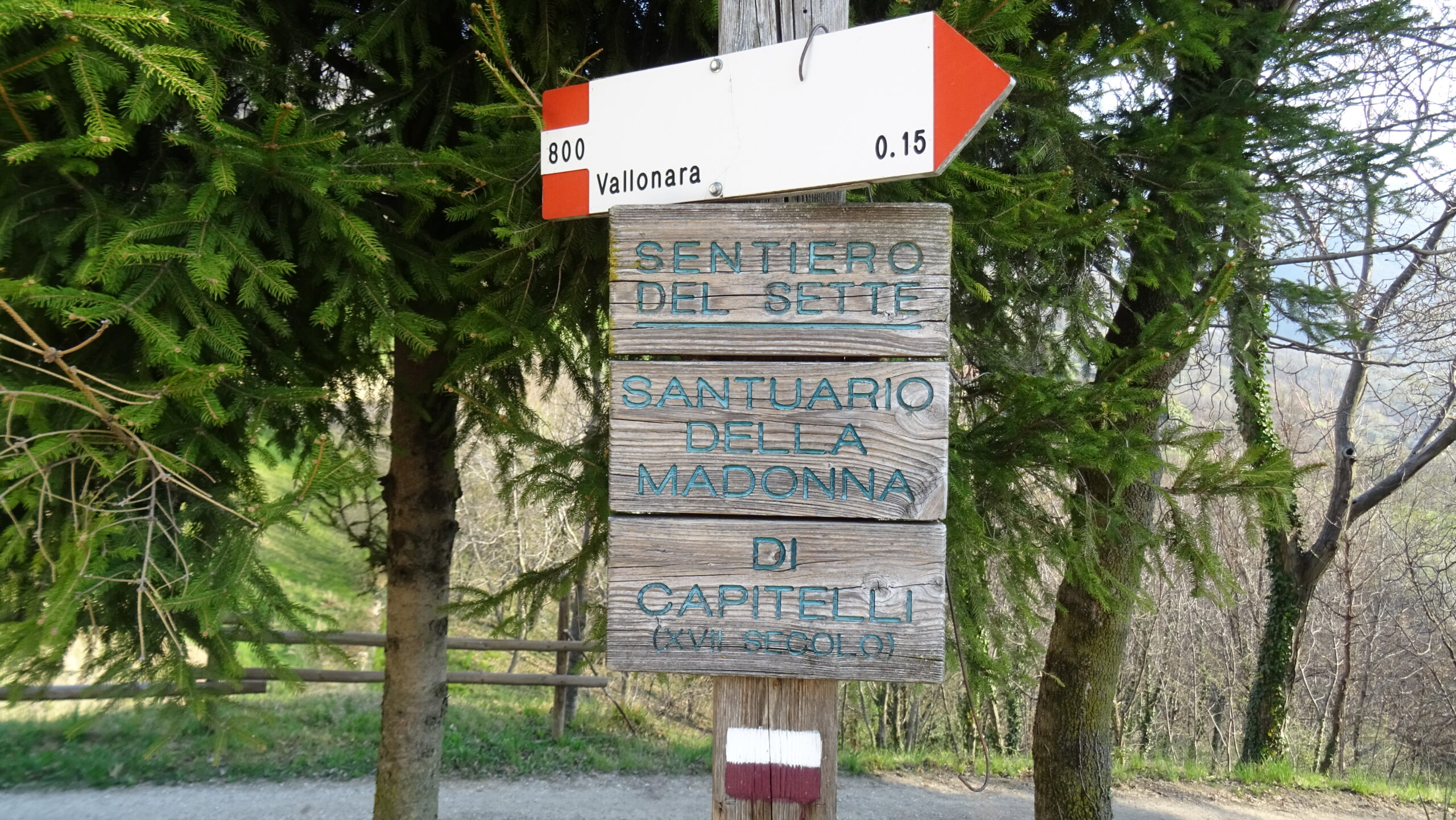 Molto piccolo, si intravede in fondo un doppio cartello del Sentiero del Sette.