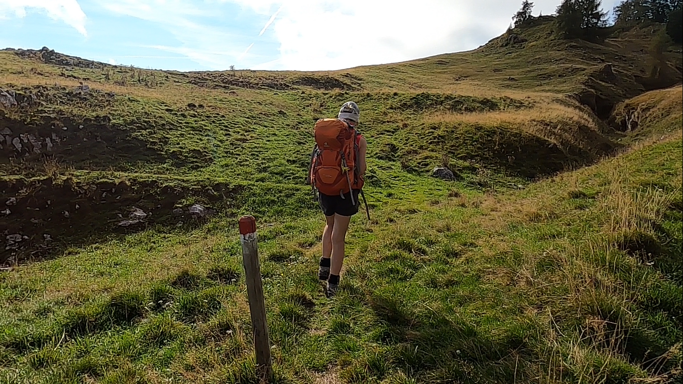 E qui ci aspetta la terza sorpresa: il Sentiero delle Creste prosegue più a sinistra di quello che conoscevamo noi, lungo il versante sud, costantemente accompagnato dalle bandierine gialle.